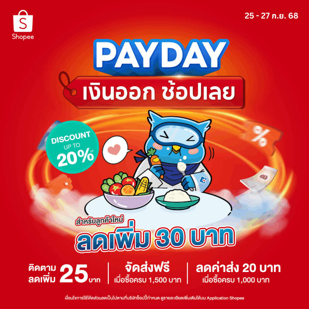 🔥Shopee PAYDAY วันที่ 25 – 27 ก.ย. 68🔥